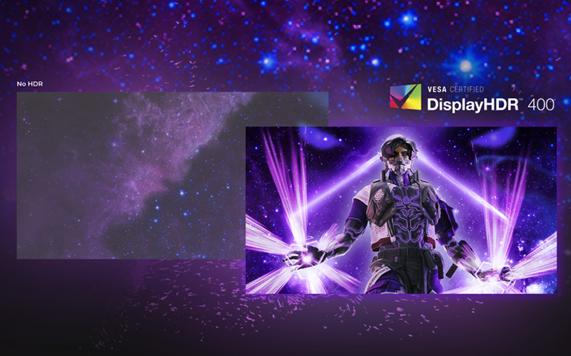 Même le plus bas niveau de la fonctionnalité HDR (High Dynamic Range) applique un surclassement considérable aux moniteurs ordinaires. Le pic de luminance de 400 cd/m² permet à votre écran de parfaire la qualité d’image avec de multiples spectres chromatiques et un contraste plus diversifié. Le certificat VESA assure la richesse des détails et dépeint de façon réaliste les univers des jeux et des films.