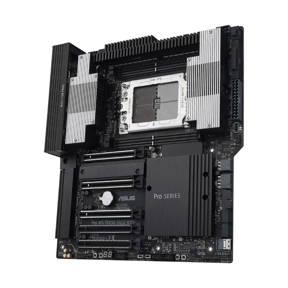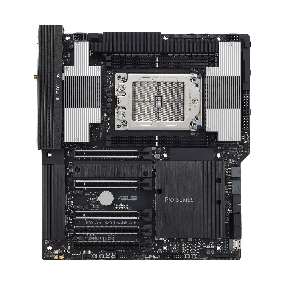 La carte mère pour station de travail ASUS Pro WS TRX50-SAGE WIFI est conçue pour les utilisateurs à la recherche de hautes performances. Elle prend en charge les processeurs multicoeurs surpuissants AMD Ryzen Threadripper PRO 7000WX et Threadripper 7000 sur socket AMD sTR5, la RAM DDR5 4-channel, les SSD M.2 PCIe 5.0 ainsi que les cartes graphiques PCI-Express 5.0 pour des performances d’exception. Ces caractéristiques incroyables vous permettront d’assembler une station de travail surpuissante et parée pour l’avenir, destinée à la Réalité Virtuelle, au multitâche ultra-intensif, à l’édition numérique ou à l’édition musicale et vidéo.