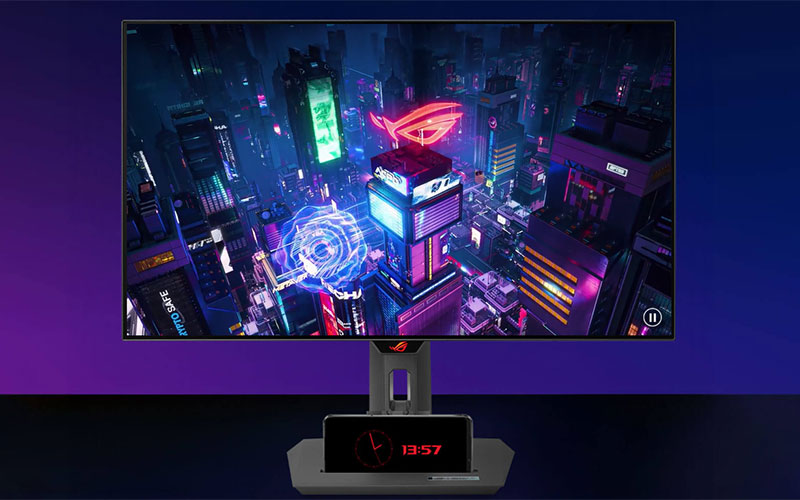Le dissipateur passif personnalisé du XG27AQDMG donne la priorité à la dissipation de la chaleur. En outre, le dos du moniteur est doté de prises d’air supérieures qui améliorent considérablement le refroidissement et réduisent le risque de brûlure. ASUS OLED Care fournit des rappels de nettoyage des pixels, un économiseur d’écran, une fonction de déplacement de l’écran et bien plus encore pour protéger la dalle OLED et assurer la longévité de l’écran. Lorsqu’il est activé, le paramètre de luminosité uniforme (une exclusivité ROG) dans le menu OSD diminue la luminosité maximale afin de maintenir des niveaux cohérents pour une meilleure visualisation, même lorsque l’on modifie la taille des fenêtres blanches lumineuses. Il rend également les sessions de jeu marathon beaucoup plus agréables pour les yeux.