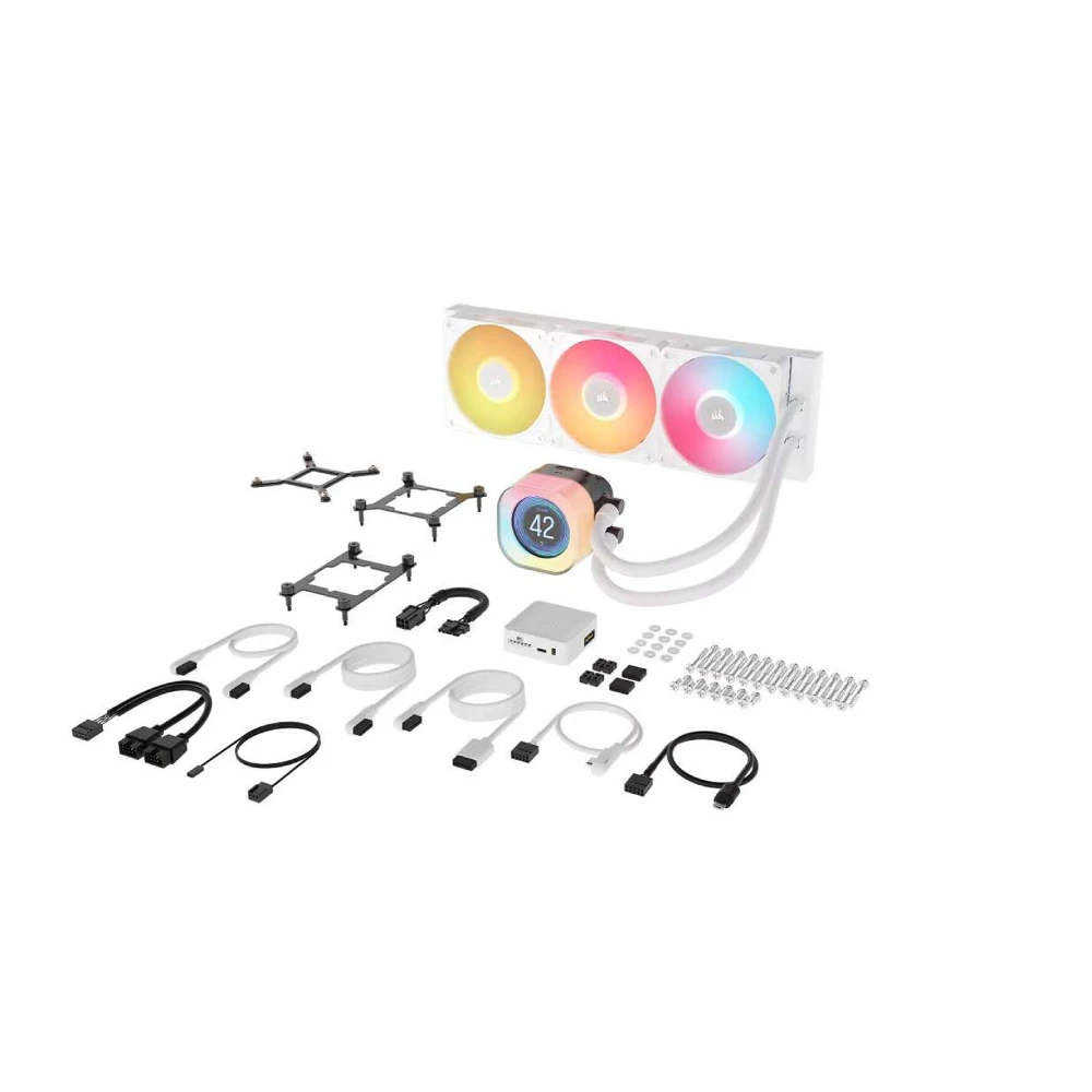 Ce système est doté de trois ventilateurs RX120 RGB hautes performances, chacun équipé de 8 LED RGB adressables individuellement, offrant ainsi des effets lumineux personnalisables et synchronisés avec les 20 LED RGB intégrées à la pompe. La conception modulaire CapSwap permet de personnaliser l’apparence du refroidisseur en remplaçant le bouchon de la pompe sans outil (CapSwap non inclus). Compatible avec les derniers sockets Intel LGA 1851/1700 et AMD AM5/AM4, l’installation est facilitée grâce aux supports de fixation et plaques arrière inclus. De plus, le refroidisseur est livré avec de la pâte thermique CORSAIR XTM70 Extreme Performance pré-appliquée, assurant un transfert de chaleur maximal entre le processeur et la plaque froide.