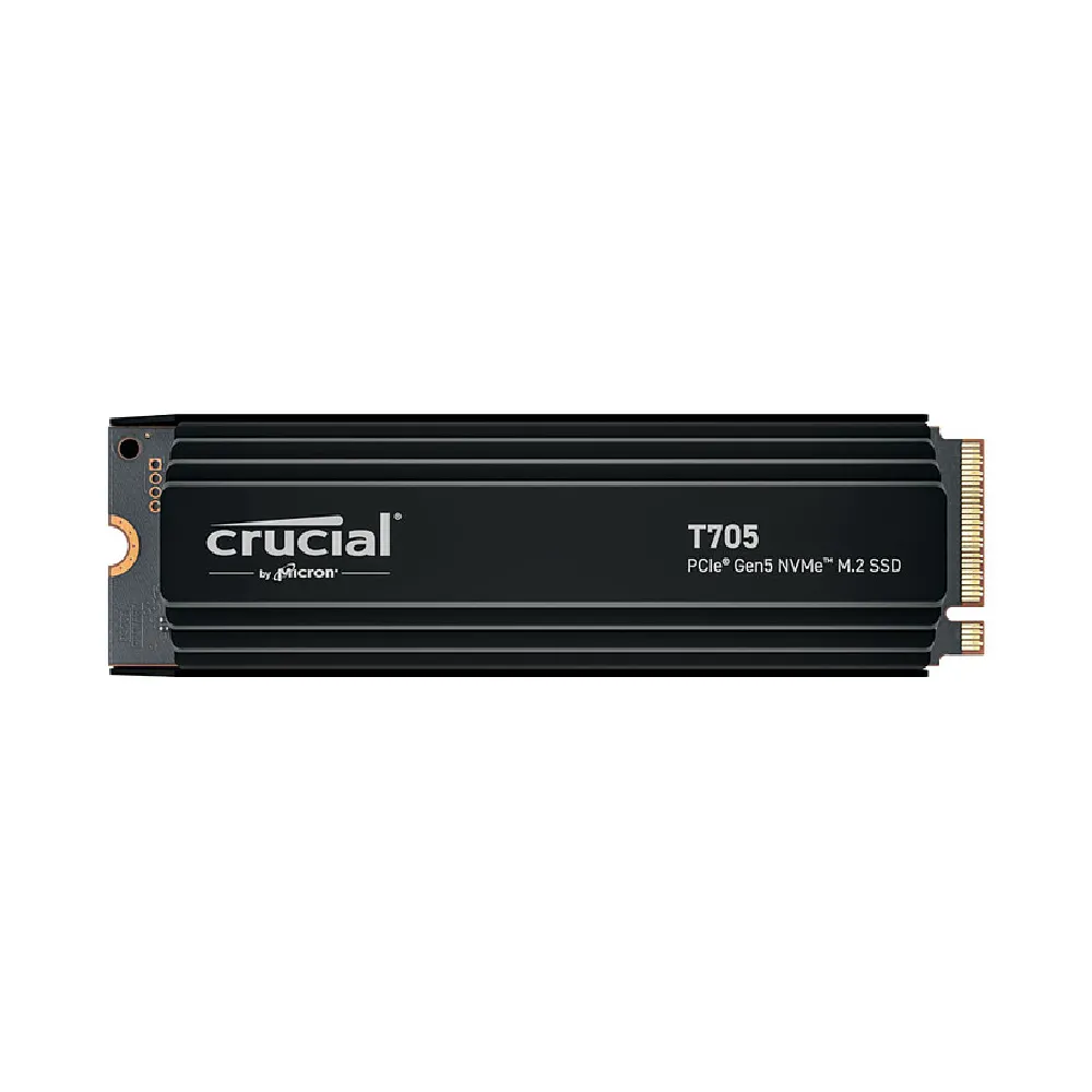 Le SSD Crucial T705, doté de l’interface PCIe 5.0 x4 NVMe 2.0, offre des vitesses allant jusqu’à 14 500 Mo/s en lecture séquentielle et jusqu’à 12 700 Mo/s en écriture séquentielle (selon le modèle), pour exploiter pleinement les performances du PCIe 5.0. Accélérez vos jeux, créez à la vitesse de l’éclair et utilisez des applications d’intelligence artificielle sans effort grâce à ce SSD Crucial T705, compatible avec le dissipateur thermique de votre carte mère.