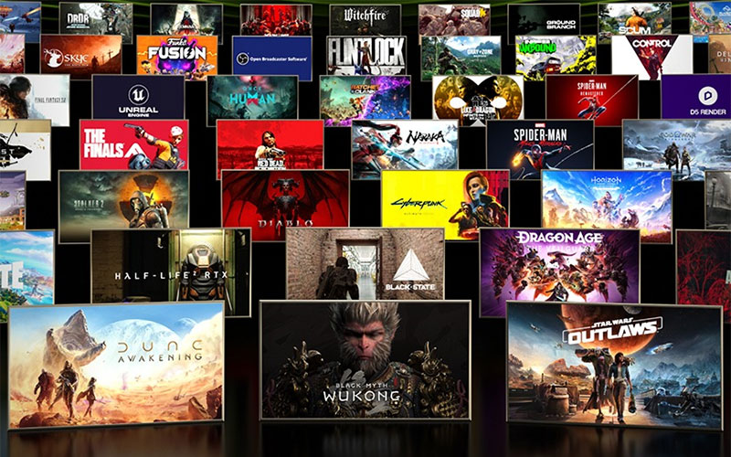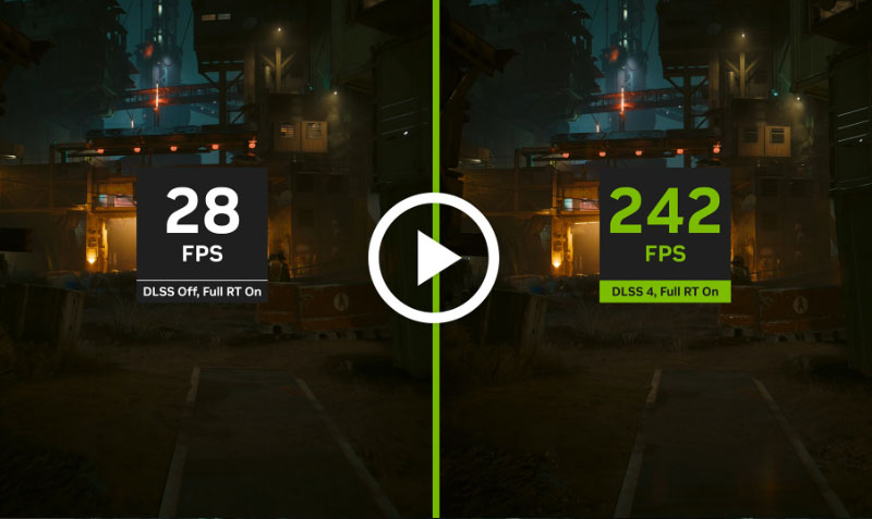 Le DLSS est une suite révolutionnaire de technologies de rendu neuronal qui exploite l’IA pour accélérer la fréquence d’images, réduire la latence et améliorer la qualité visuelle. Le DLSS 4, qui constitue une avancée décisive, met à profit la puissance phénoménale des GPU GeForce RTX série 50 et des cœurs Tensor de 5e génération pour fournir une nouvelle fonctionnalité de génération multi-images, une reconstruction de rayons (Ray Reconstruction) et Super Résolution de qualité encore plus élevée. L’alliance du DLSS et de GeForce RTX vous offre la meilleure façon de jouer en vous donnant accès à un véritable supercalculateur d’IA de NVIDIA dans le Cloud, qui améliore constamment les capacités de votre PC en matière de gaming.