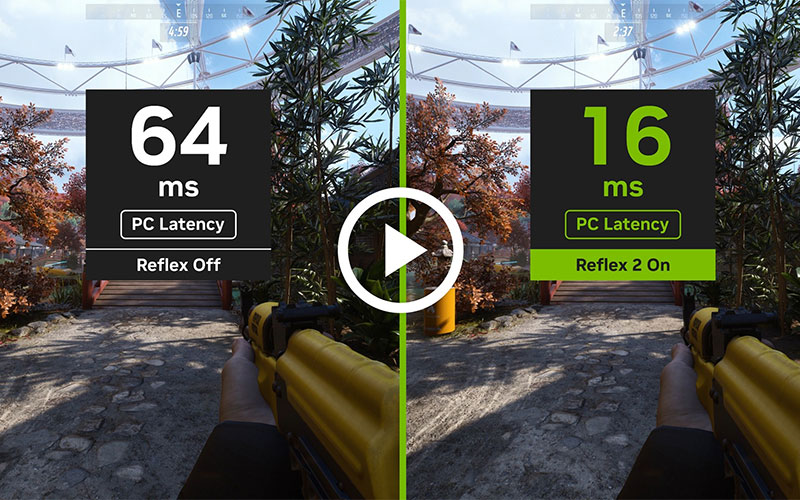 Les technologies Reflex optimisent le pipeline graphique pour une réactivité ultime, offrant une acquisition de cibles plus rapide, des temps de réaction plus rapides et une précision de visée améliorée dans les jeux compétitifs. Reflex 2 introduit le Frame Warp, qui réduit encore davantage la latence en fonction du dernier clic de souris.