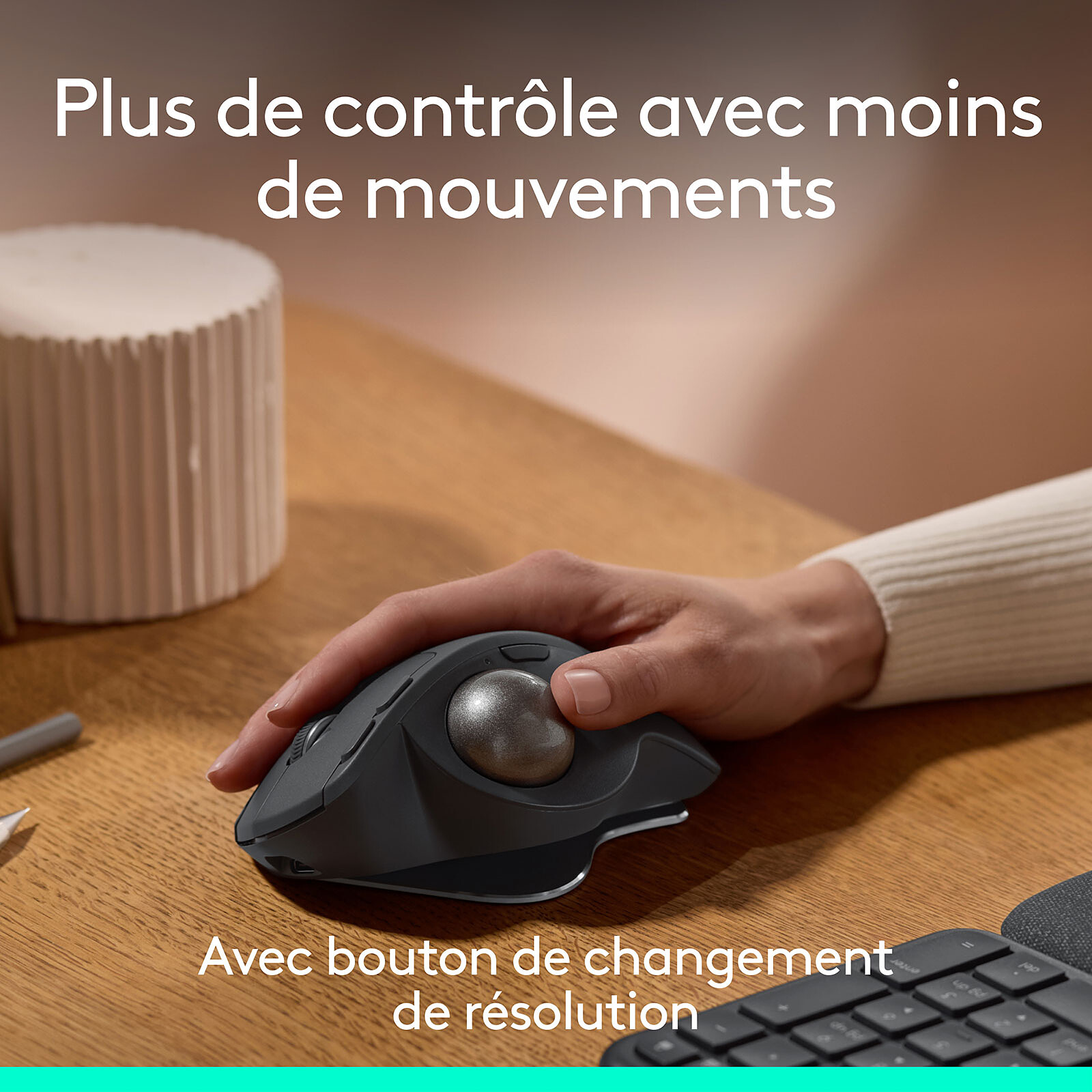 Le Logitech MX Ergo S est un trackball sans fil conçu pour améliorer votre expérience de travail. Certifié par des ergonomes, ce modèle innovant propose un angle d’inclinaison de 20 degrés, réduisant la tension musculaire dans votre avant-bras de 27 %. Grâce à son contrôle par le pouce précis et fluide, ainsi qu’à ses clics discrets, cette souris se distingue par sa capacité à optimiser le confort de l’utilisateur. Elle offre également un chargement rapide USB-C qui permet jusqu’à 24 heures d’utilisation avec seulement une minute de charge.