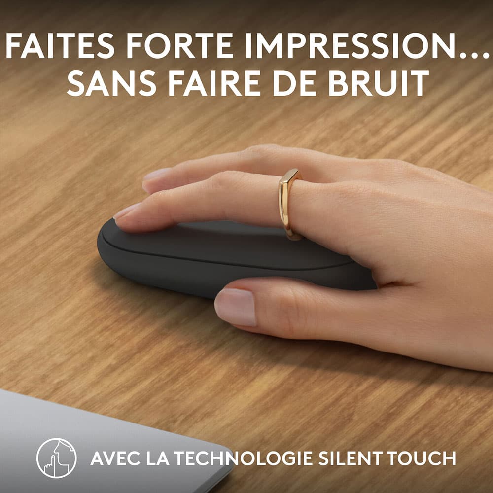 Avec trois boutons silencieux et la technologie Silent Touch, vous bénéficiez du même confort de clic que vous aimez tant, mais en faisant beaucoup moins de bruit. Pouvant se connecter via Bluetooth ou à l’aide d’un récepteur USB Logitech (non fourni), vous disposez alors d’une distance de 10 m pour l’utiliser avec votre ordinateur.