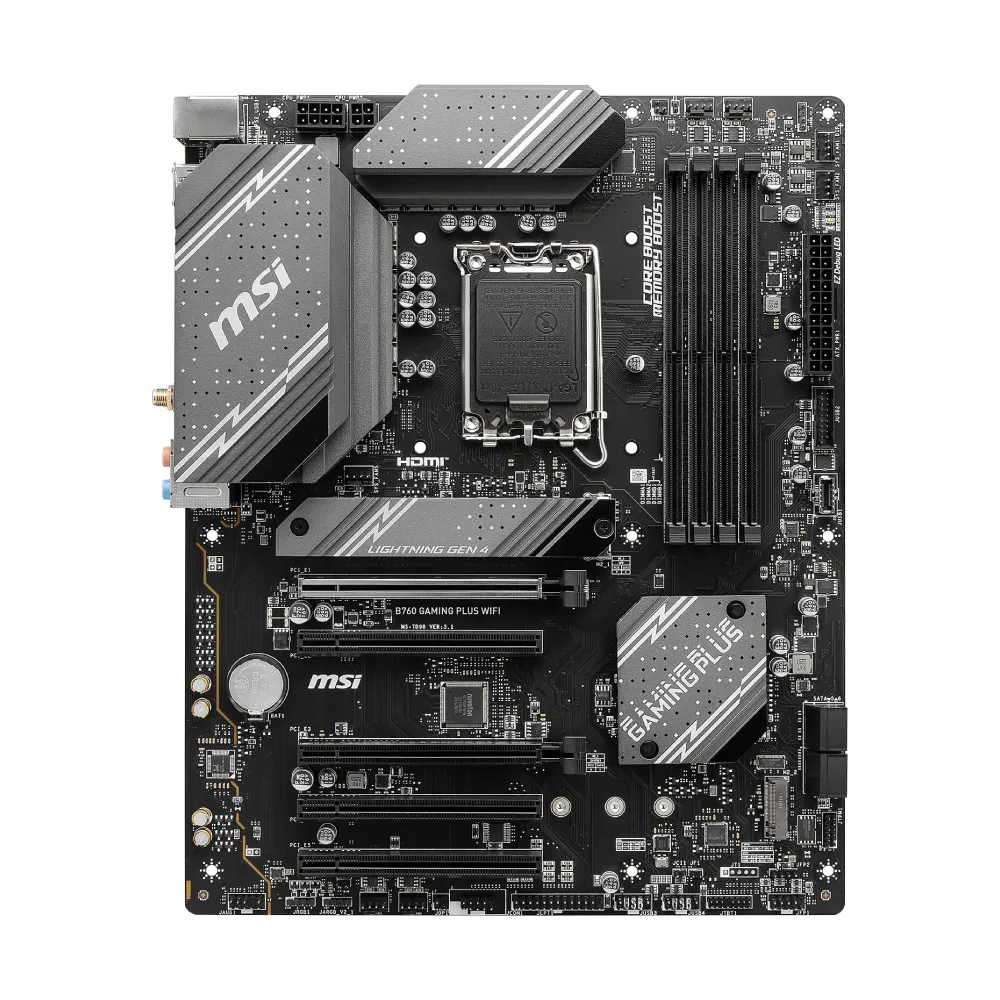 La carte mère MSI B760 GAMING PLUS WIFI conçue pour les processeurs Intel Core hybrides de 12ème et 13ème génération est idéale pour l’assemblage d’une configuration Gaming au coût maitrisé. Elle prend en charge les processeurs Intel Core 12ème et 13ème génération, les cartes graphiques PCI-Express 4.0 16x, les SSD M.2 PCIe 4.0, la RAM DDR5 ainsi que les périphériques USB 3.1. Elle est en outre dotée des connexions sans-fil Wi-Fi 6E et Bluetooth 5.3.