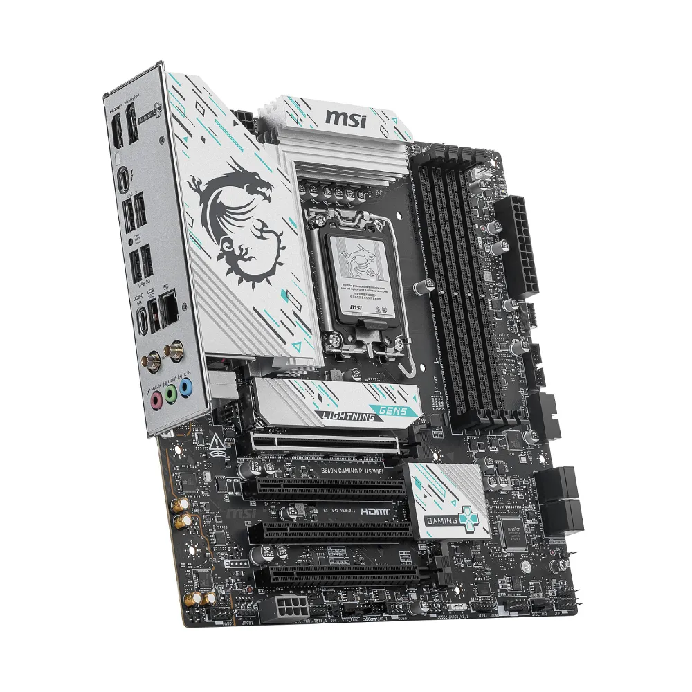 La carte mère MSI B860M GAMING PLUS WIFI est idéale pour les joueurs à la recherche du compromis idéal performances/prix permettant d’exploiter au mieux le potentiel de leur processeur de dernière génération. Elle est basée sur le nouveau chipset Intel B860 spécialement conçu pour accompagner votre processeur Intel Core Ultra série 2. La MSI B860M GAMING PLUS WIFI au format ATX est dotée d’une connectique et de technologies de pointe : Thunderbolt 4, PCI-Express 5.0, DDR5, LAN 5 GbE, Wi-Fi 7 et Bluetooth 5.4, sans oublier les exclusivités MSI (MSI AI Engine, Mystic Light, Frozr AI Cooling, Core Boost…).