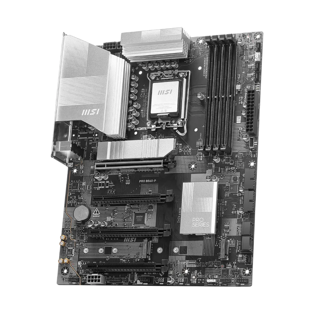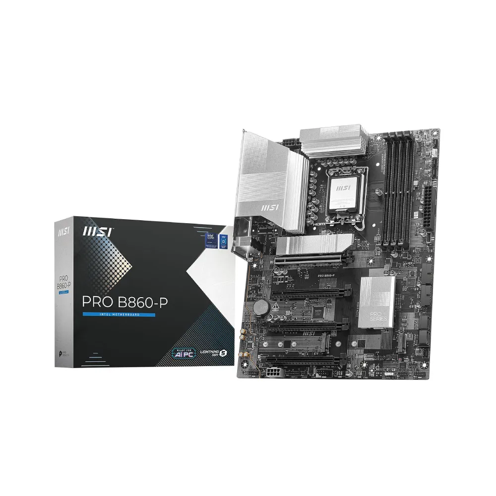 La carte mère MSI PRO B860-P est idéale pour les joueurs, créateurs et professionnels souhaitant exploiter au mieux le potentiel de leur processeur de dernière génération. Elle est basée sur le nouveau chipset Intel B860 spécialement conçu pour accompagner votre processeur Intel Core Ultra série 2. La MSI PRO B860-P est dotée d’une connectique et de technologies de pointe : Thunderbolt 4, PCI-Express 5.0, DDR5, LAN 5 GbE, sans oublier les exclusivités MSI (MSI AI Engine, Mystic Light, Frozr AI Cooling, Core Boost et bien plus encore).